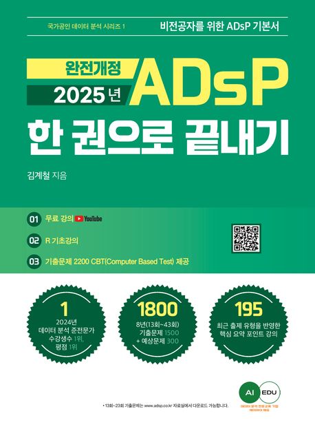 ADsP(Advanced Data Analytics Semi-Professional)는 데이터 분석 준전문가로 국가공인 자격증이다. 준전문가는 응시 자격에 제한이 없으며, 필기시험의 합격 기준은 과목별 40% 미만 총점 60점 이상이다. 데이터 이해, 데이터 분석 기획, 데이터 분석 3과목이 시험 범위로 총 50문항(객관식 50문항)이 출제되며 시험 기간은 90분이다. 유튜브에서 무료 동영상 강의를 들으면서 학습할 수 있는데 비전공자들도 열심히 공부한다면 도전해 볼 만한 자격증이다. 시험 회차가 1년 내 4회이기 때문에 그동안 출제된 기출문제와 예상문제 위주로 출제 유형을 잘 분석하면 합격하는 데 도움을 받을 수 있을 것이다.