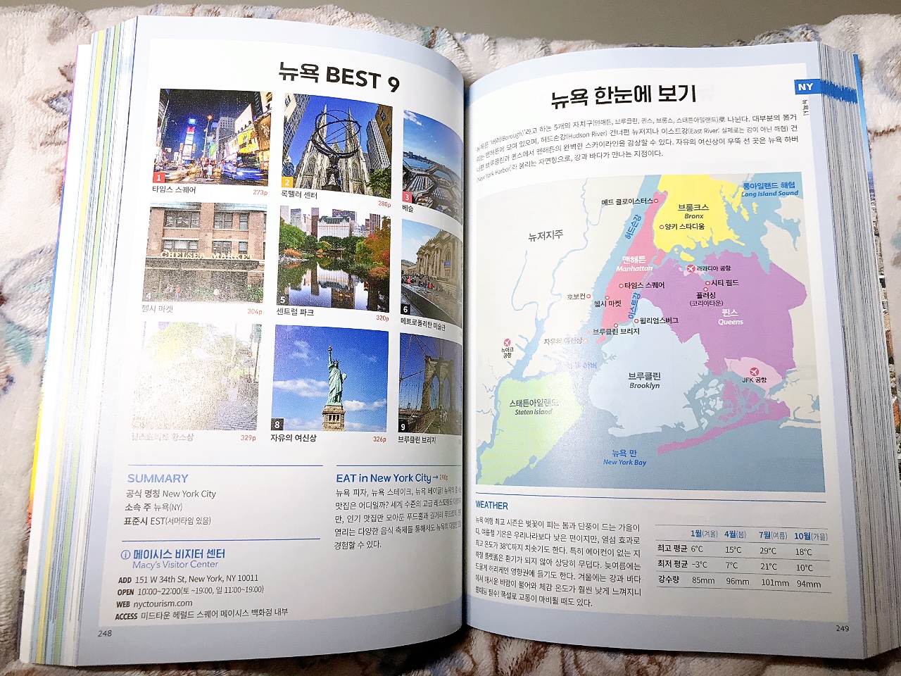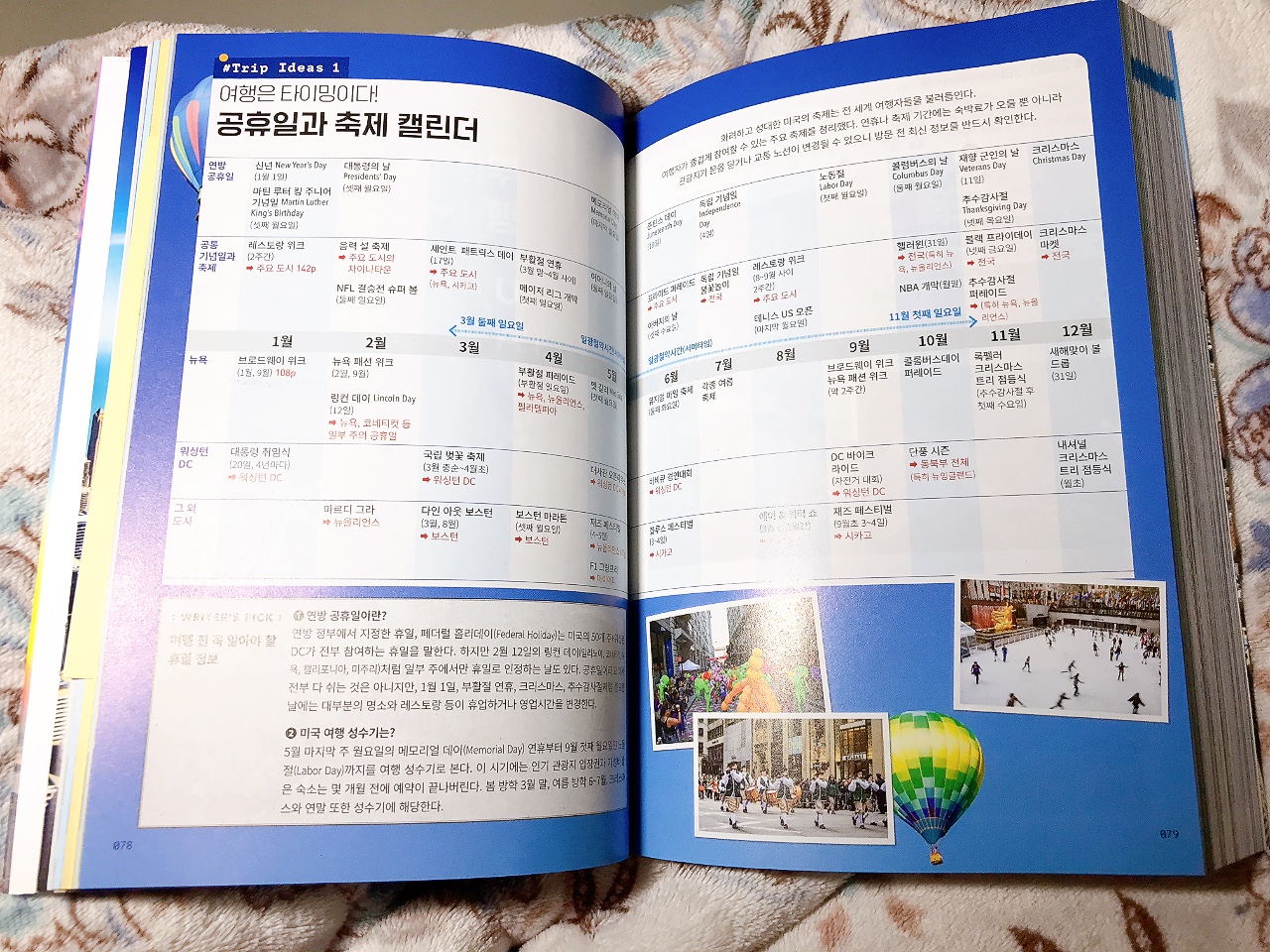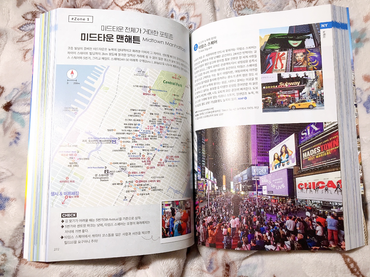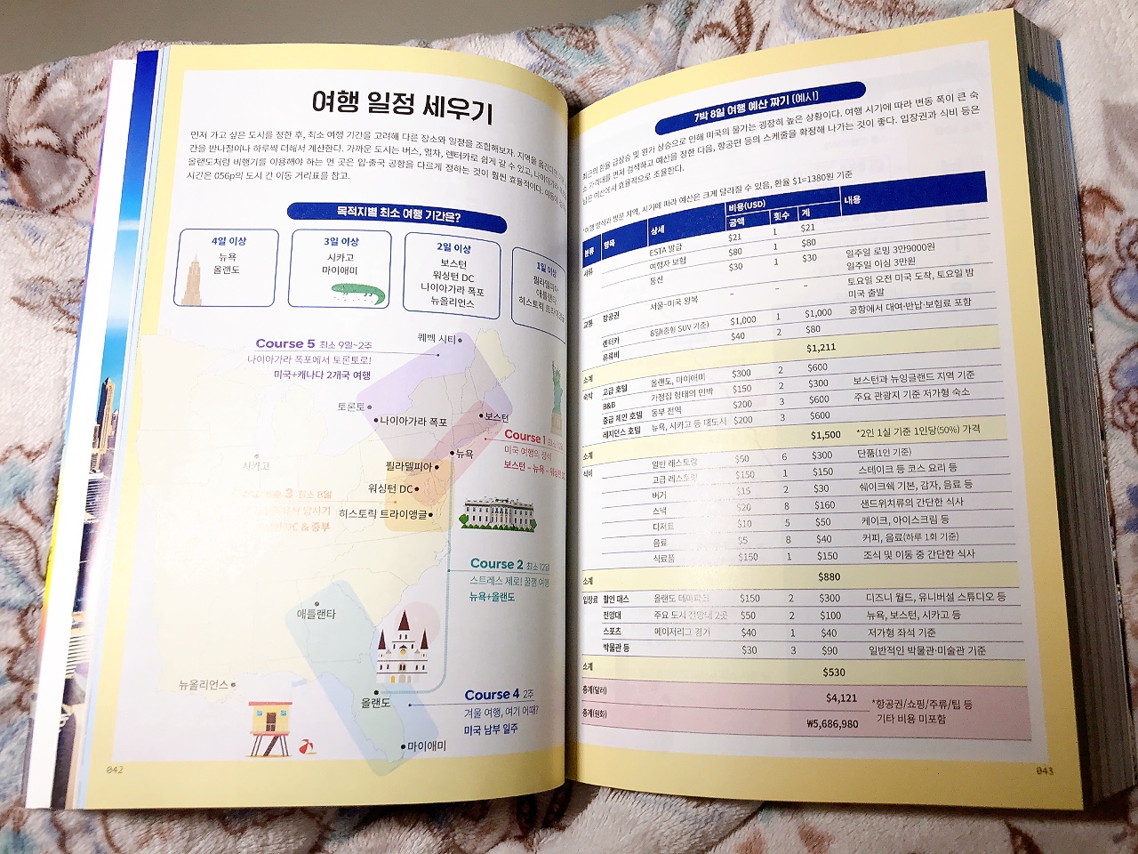 미국 50개 주 중 동부만을 다루고 있지만 한반도의 약 45배에 달하는 면적이니 기간을 넉넉하게 잡아도 인접한 도시를 빼고는 대부분 비행기로 이동해야 할 정도로 크다. 그래서 가보고 싶은 도시나 지역을 선정해서 여행 일정을 세우는 것이 현명하다. 책을 보는 내내 가보고 싶은 곳이 너무나도 많았다. 대학교 캠퍼스 투어, 나이아가라 시티 크루즈, 타임스 스퀘어, 매직 킹덤 등 하나같이 매력적이며 오래도록 기억에 남을 곳이다. 이 책에선 각 도시마다 추천 일정과 IN&OUT, 시내 교통, 지하철&주요 교통 노선도, 할인 패스, 숙소 정하기, Zone 별 관광지 소개 등 필독해야 할 정보들을 빠짐없이 수록하였다. 재미있는 점은 각 도시마다 테마를 잡고 여행하기에 좋다는 점이다. 시간과 돈만 충분한다면 한 달 정도 머물면서 여유롭게 둘러보고 싶을 정도다.